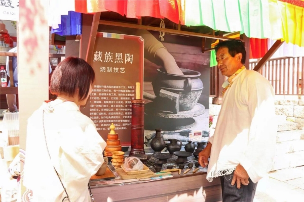Meanwhile, inheritors of Tibetan black pottery explained the craft's history and production to visitors. They emphasized the black pottery's unique sourcing from high-altitude soils, shaped by hand into delicate forms.