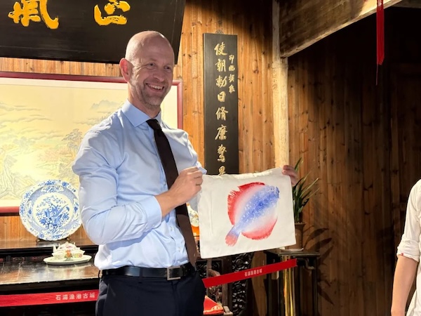 The ambassador's visit concluded at Shilang's residence, where he participated in fish rubbing, an ancient art form originating from Song Dynasty (960-1279).