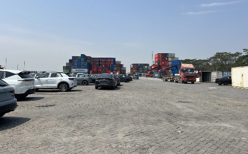 Vehicles are seen at a used car export base in Jiaxing, Zhejiang province. [Photo/Tide News]