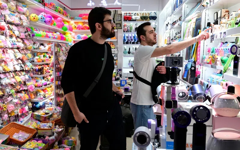 Merchants browse and negotiate electronic toy purchases at Yiwu International Trade Market during the May Day holiday in Jinhua, Zhejiang. [Photo/IC]